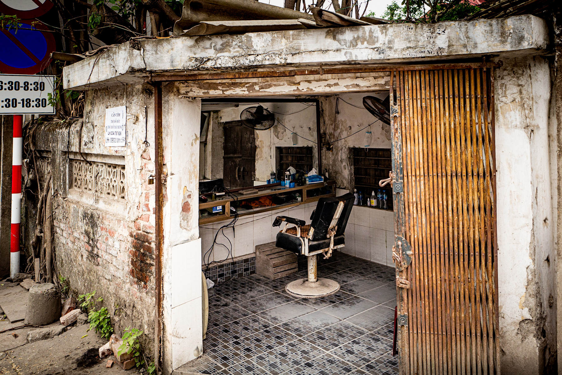 This photograph beautifully captures a slice of authentic urban life, likely found in Vietnam: a simple, open-fronted barbershop. The building itself narrates a rich history, with its weathered facade, gracefully peeling white paint, and visible brickwork, hinting at decades of stories. Lush, entwined … Continue Reading ››