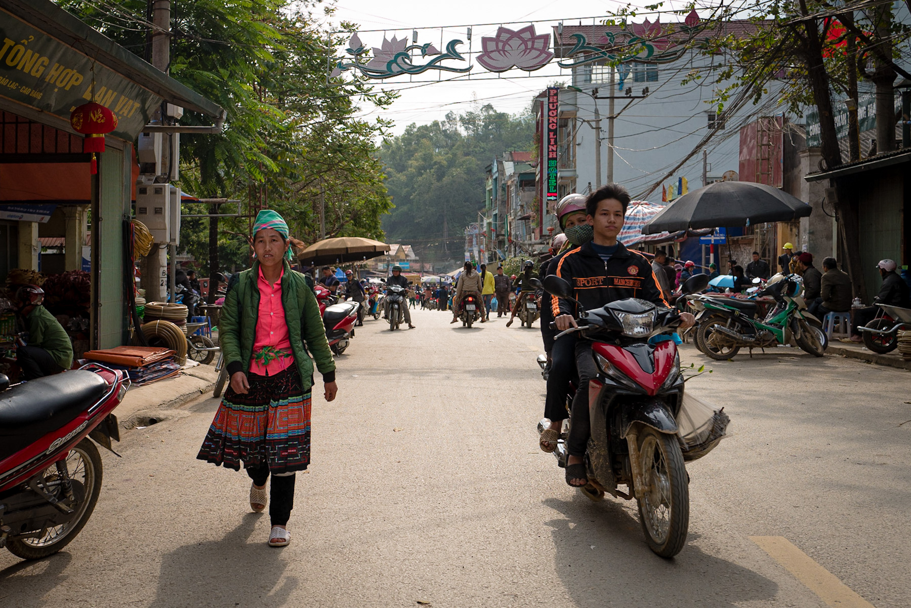 This striking photograph immerses viewers in a bustling street scene from Vietnam, a nation where deep-rooted traditions actively intertwine with the currents of modernity. The foreground is dominated by a woman whose attire serves as a vibrant cultural statement. She wears a meticulously … Continue Reading ››