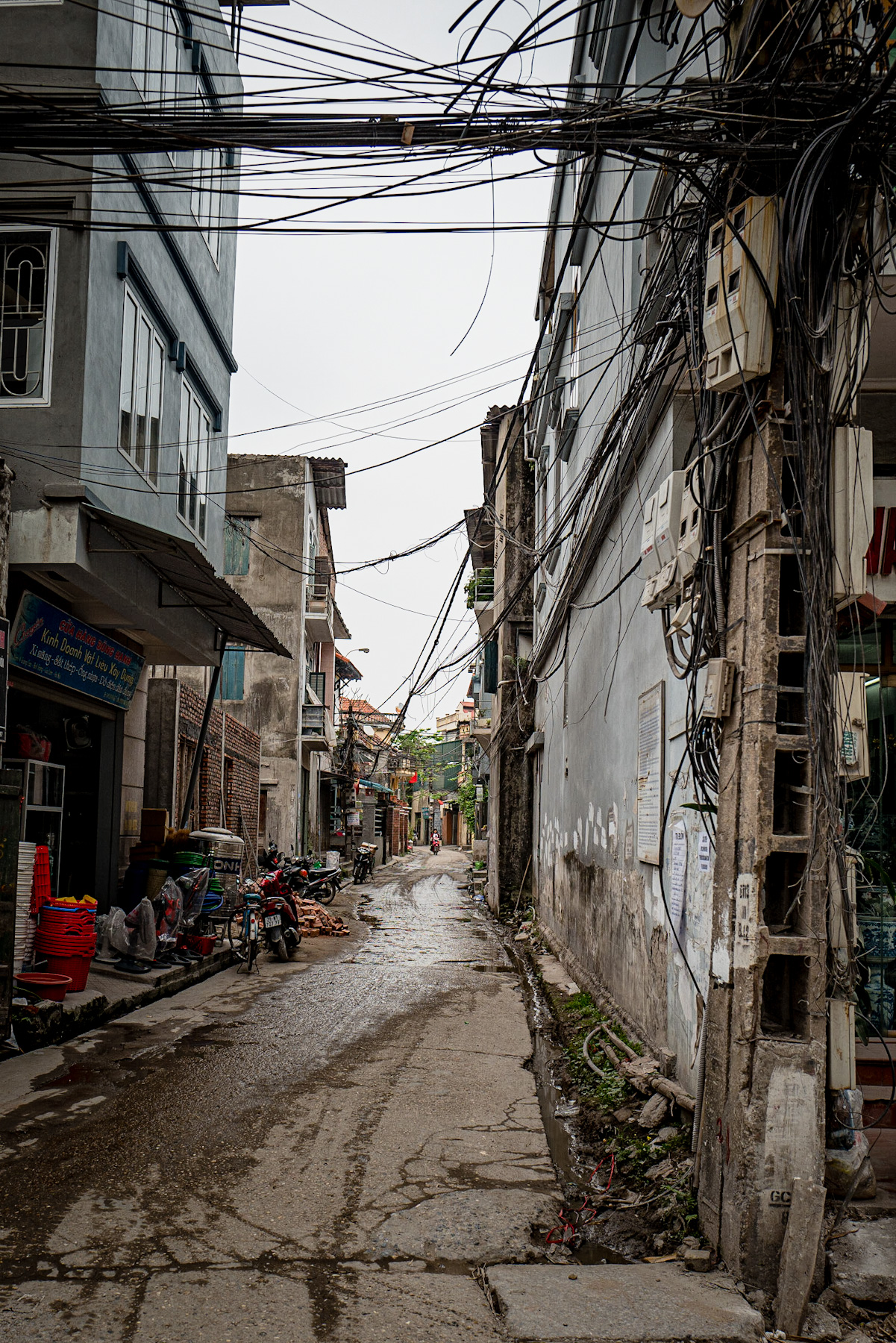 This photograph captures a narrow, wet alleyway in what appears to be an urban setting in Vietnam. The scene is dominated by the dense, tangled network of electrical wires crisscrossing overhead, a common sight in many developing countries and a testament to the … Continue Reading ››
