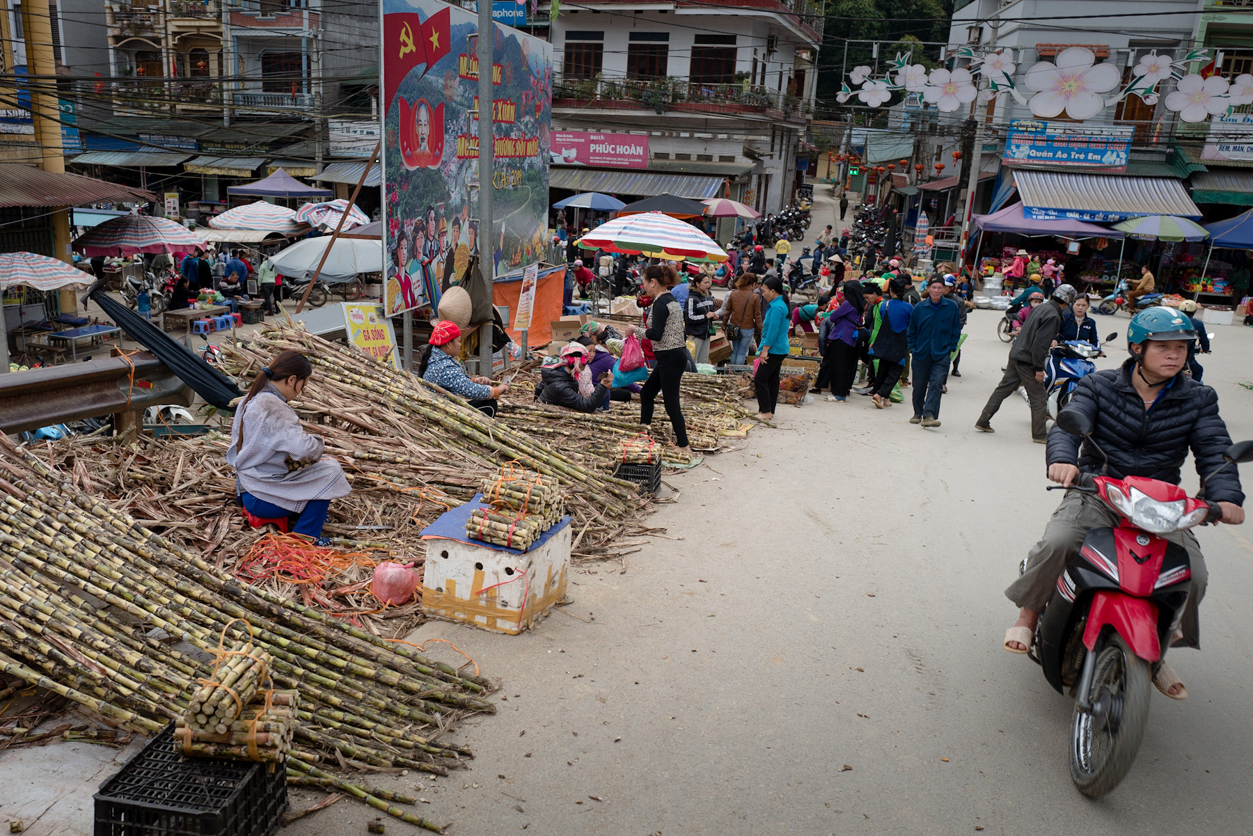 Overlooking this scene of everyday commerce is a large billboard showcasing state-sponsored imagery. It features the portrait of Ho Chi Minh alongside national and communist party flags, reminding viewers of Vietnam’s political history as a Socialist Republic. This is the duality that defines modern Vietnam: the convergence of a centrally-planned political system with a burgeoning market economy. The image, therefore, is more than a photograph of a market; it’s a layered depiction of a nation in transformation, honoring its history while actively shaping its economic future on the streets.